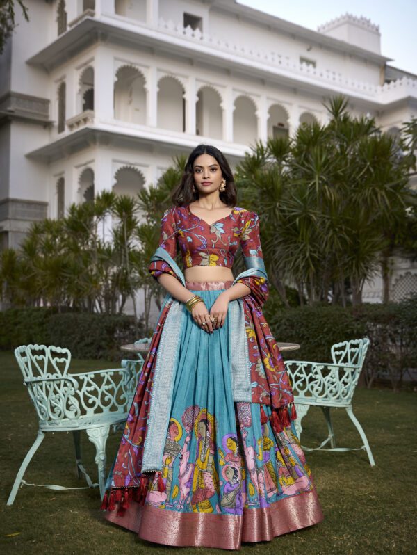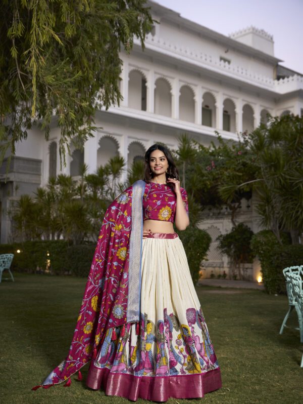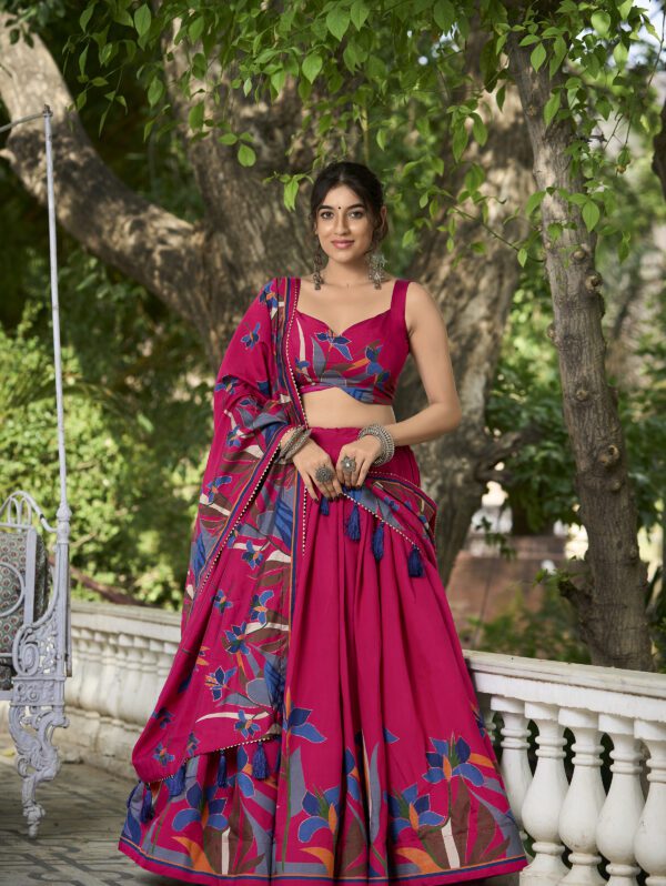 Exquisite Floral Fantasy: Tusser Silk Lehenga Choli with Intricate Print and Dupatta 🩷💛